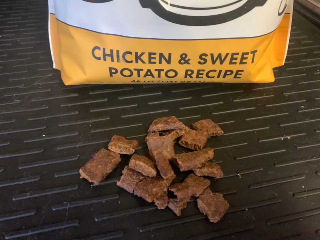 Freya has very specific standards when it comes to what’s worth working for, and the air-dried chicken made the cut without hesitation. “Working,” in her case, means stepping outside, barking at a squirrel, circling back inside, and then confidently requesting payment for yard security services. The pieces are also perfectly sized for puzzle toys and snuffle mats, which made them even more useful in our daily routine.